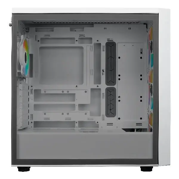 Cooler Master MasterBox 600 Argb White is a High Performance Mid Tower Case with Space for a 420mm Radiator and a 410mm GPU, Supports E-ATX/ATX/M-ATX/ITX Motherboard, 3x 140mm SickleFlow140 ARGB PWM, 1x 120mm CF120 ARGB Fans Pre-Installed